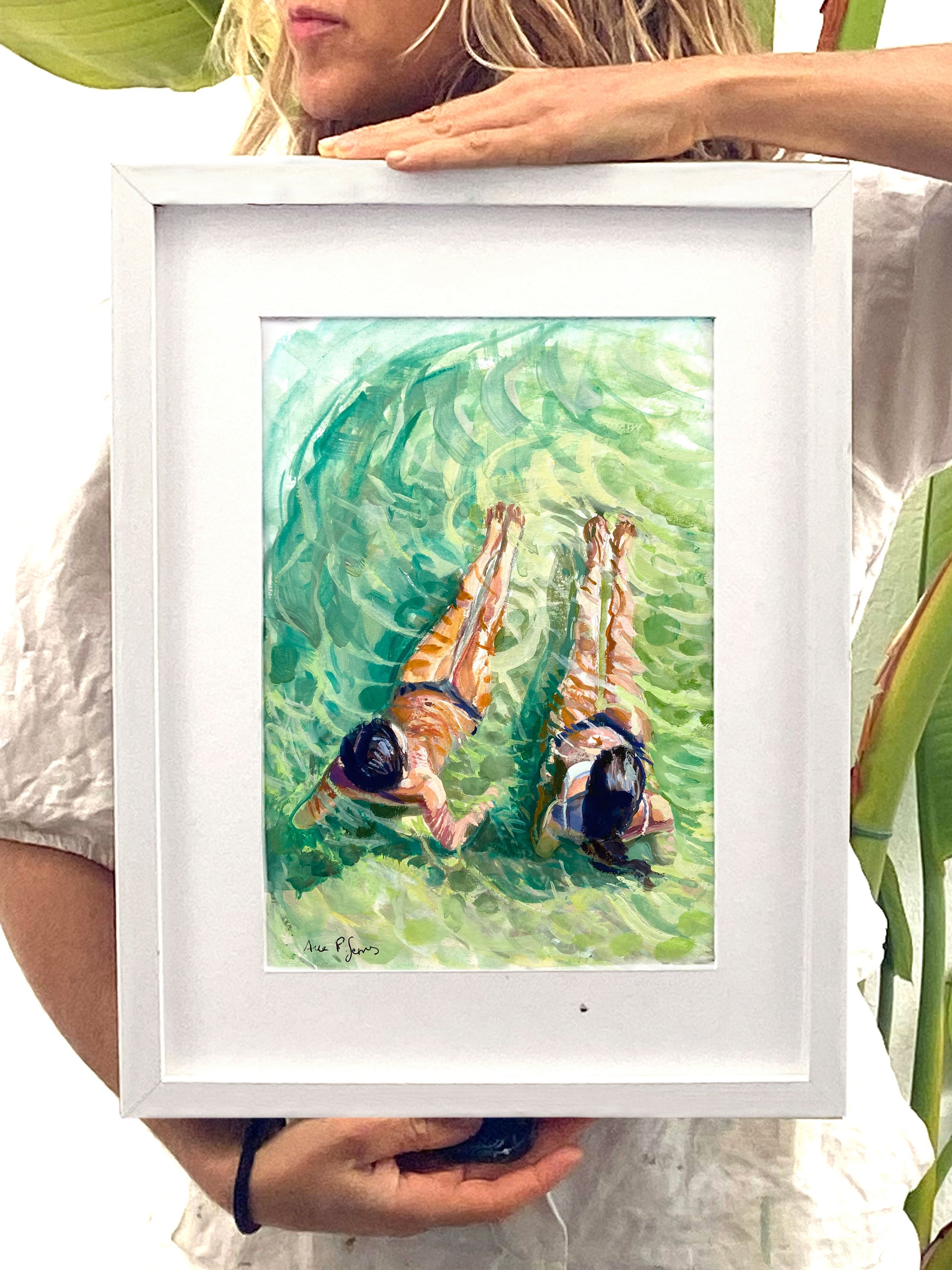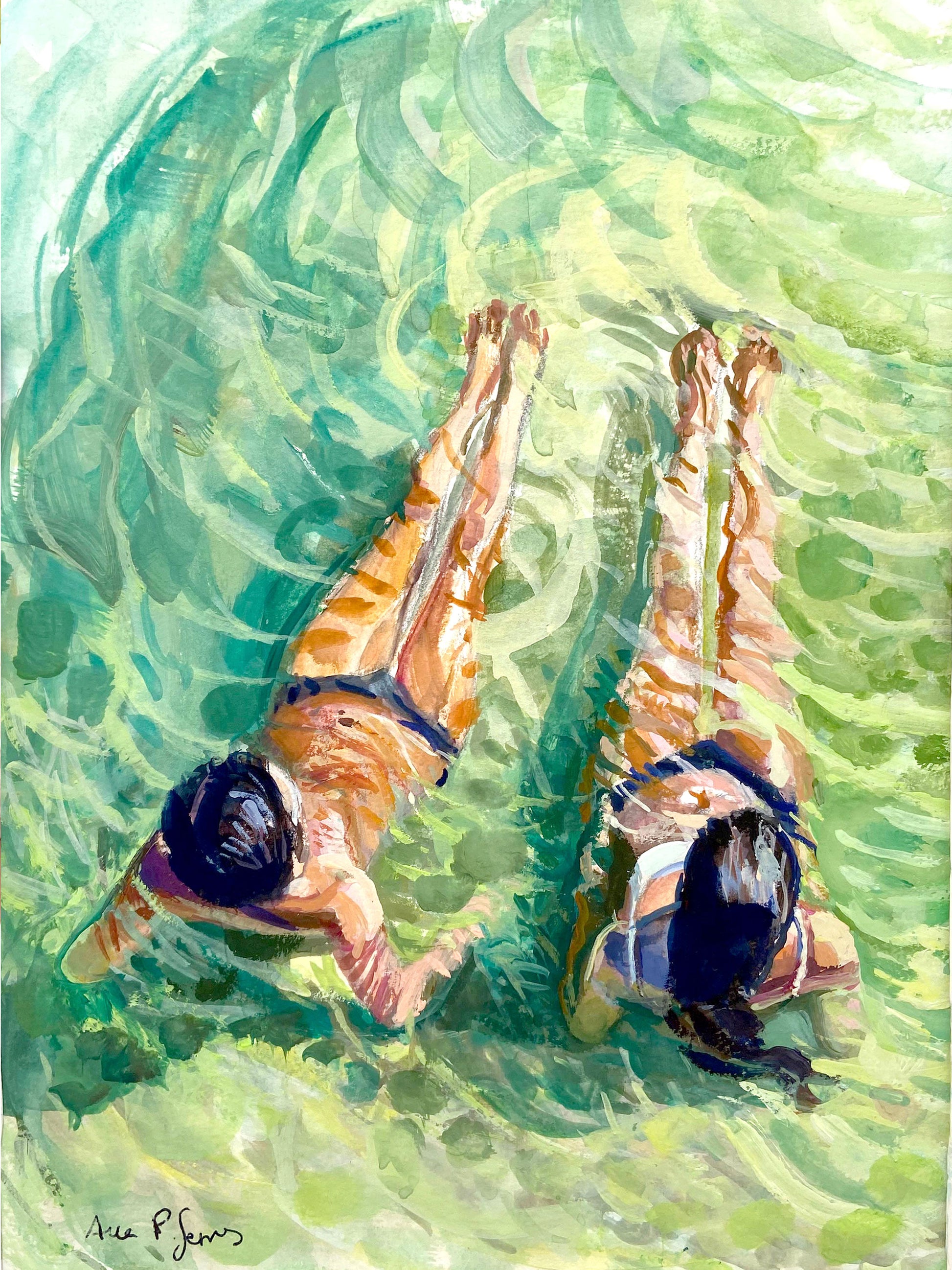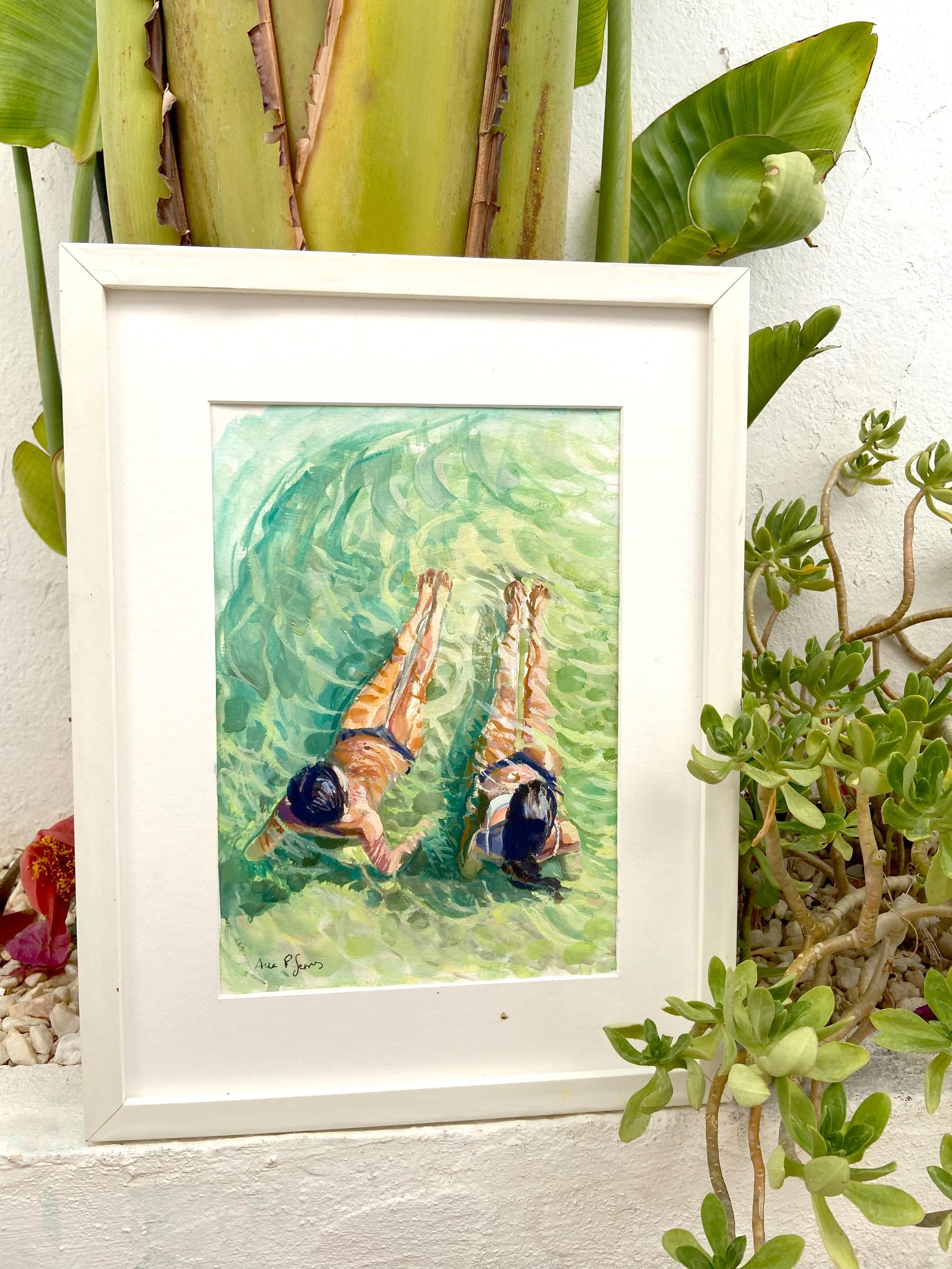 El verde del mar y los tonos anaranjados de los cuerpos sumergidos contrastaban con un brillo único. Una mezcla entre quietud y movimiento que tanto me inspira.