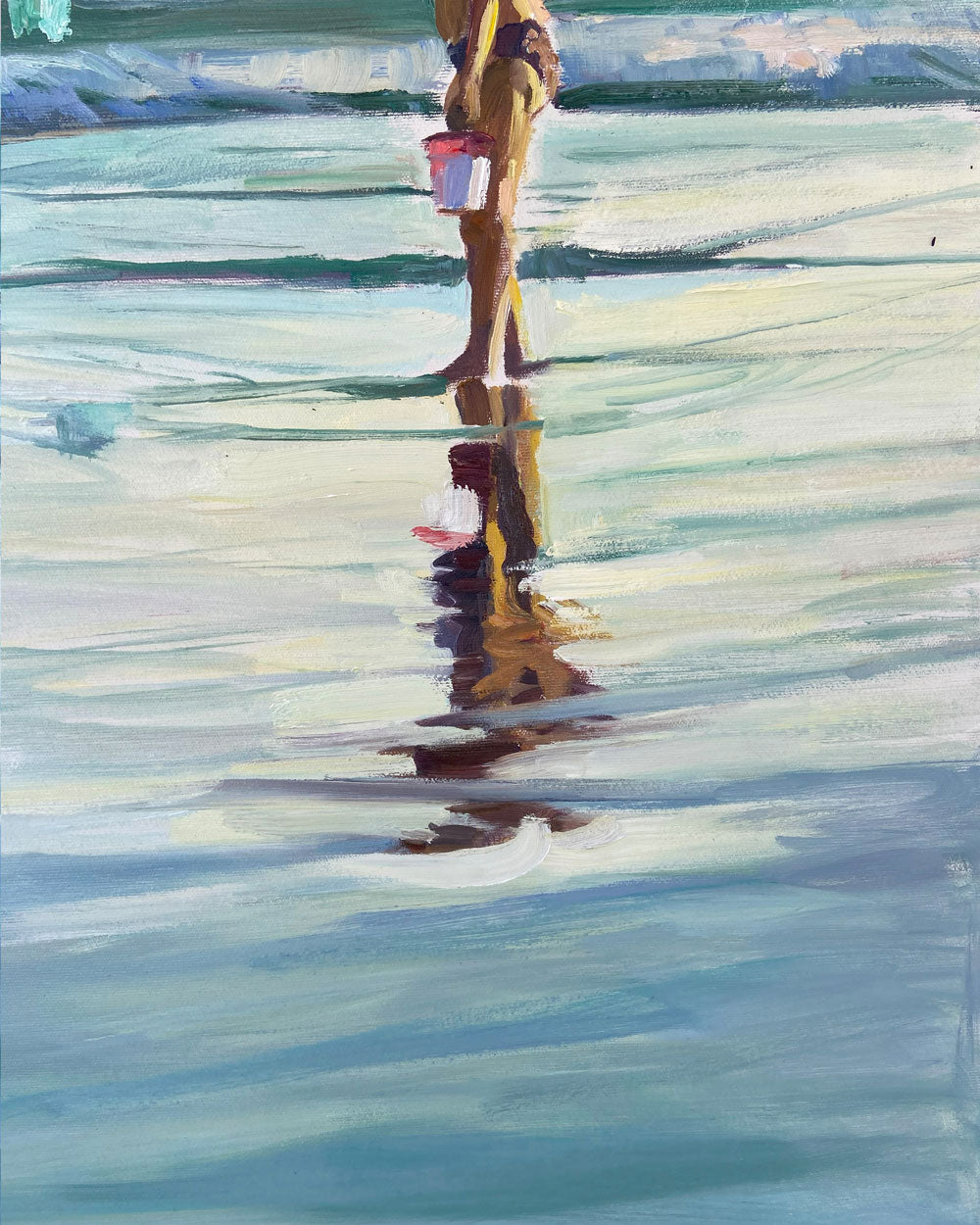 Inspirada en las playas del Algarve en Portugal, esta obra captura la calma y la belleza de lo simple, una actividad en familia con una larga tradición, buscar coquinas cuando el sol baja y la marea está baja. Una hora mágica, donde los tonos fríos y cálidos de los últimos rayos del Sol se encuentran en perfecta armonía.