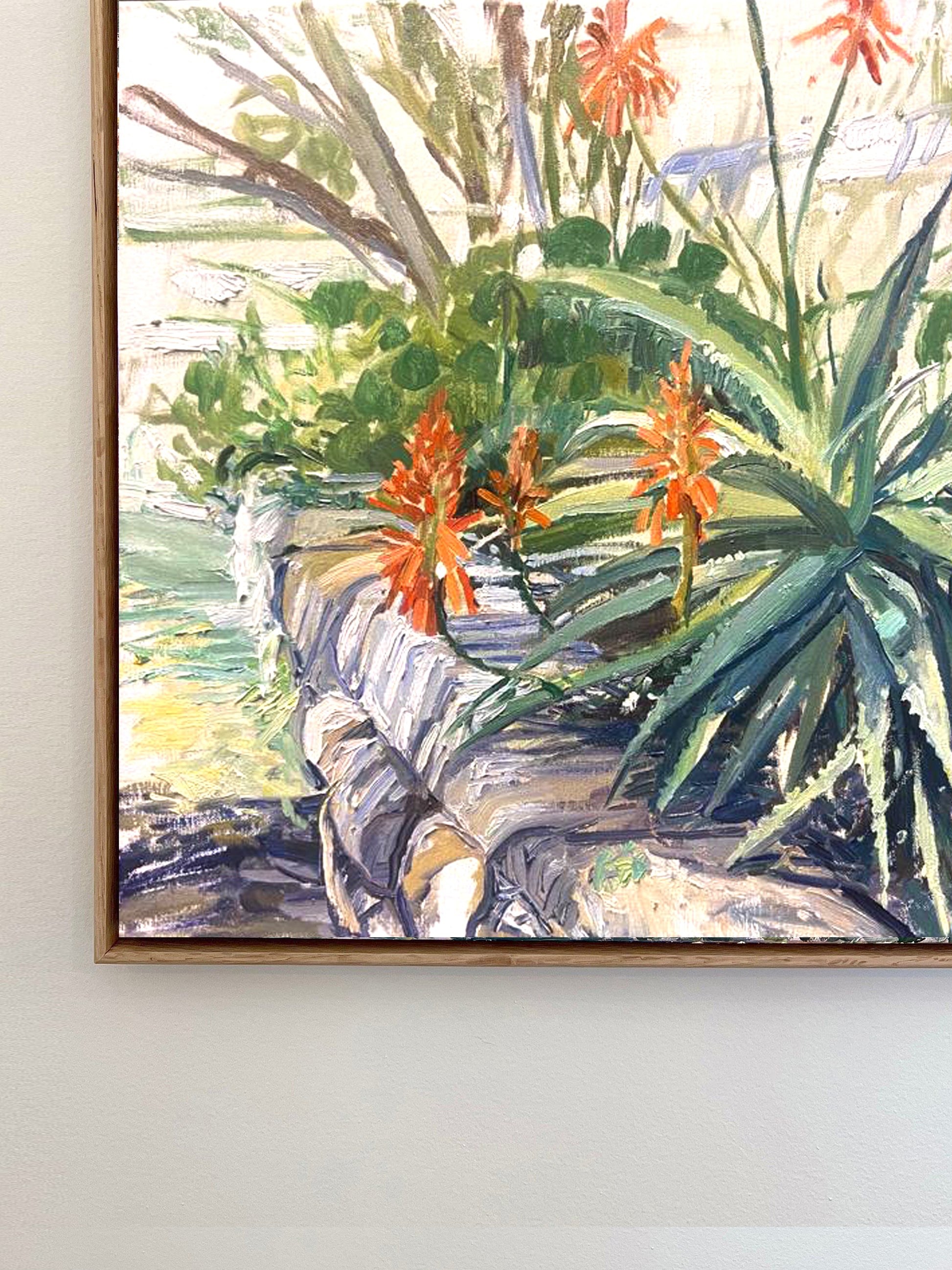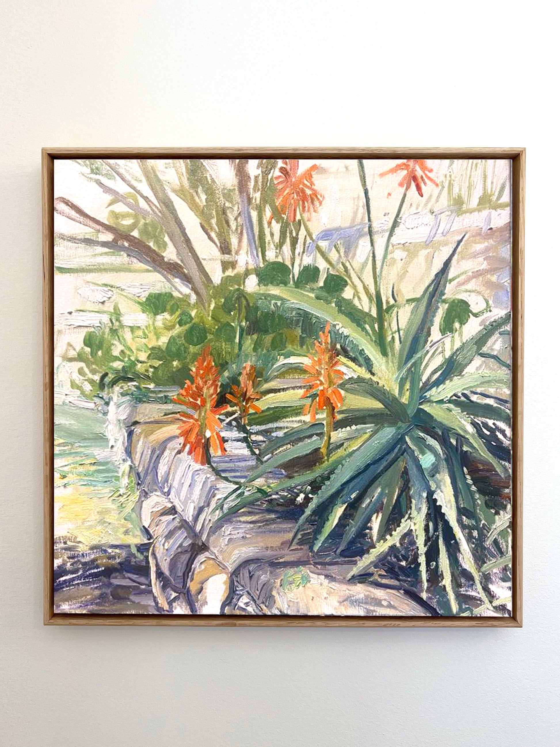 El agave florece en poderosas espigas con flores naranjas intenso, que me recuerdan a antorchas. El contraste con los tonos verdes es muy poderoso.