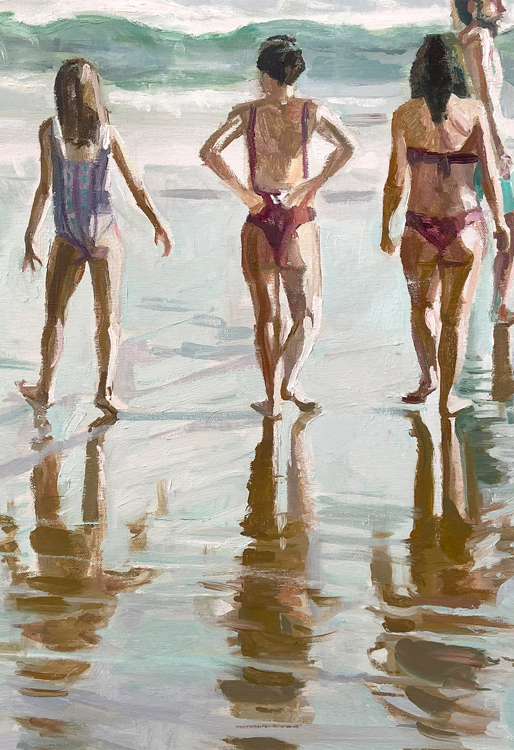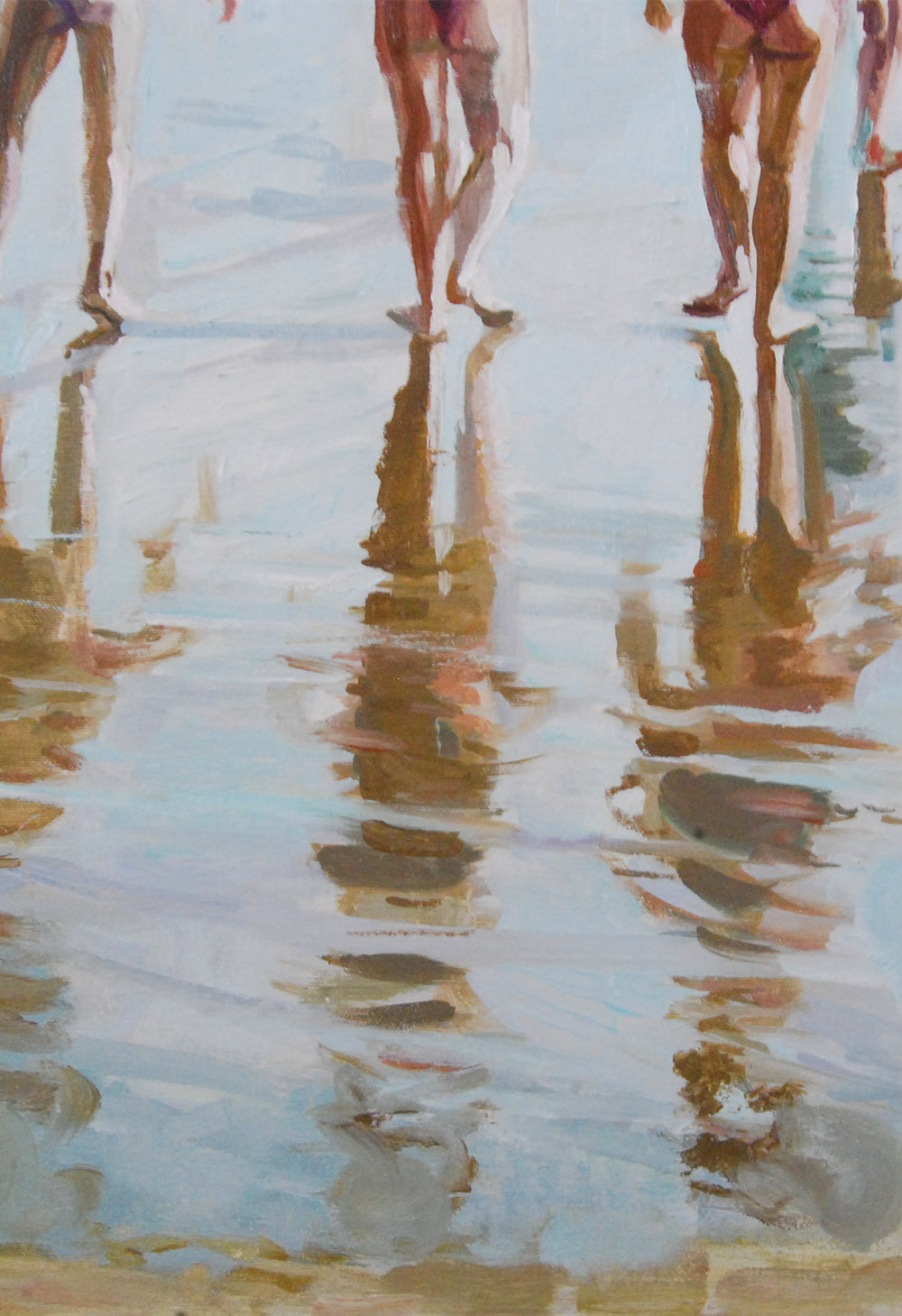 Cada cuadro es una ventana a un escenario en el que se crea una narrativa viva y fluida, donde todo es movimiento y vida. Me gusta pensar que cada uno se imagina el murmullo de las conversaciones y el sonido de las olas rompiendo en la orilla.