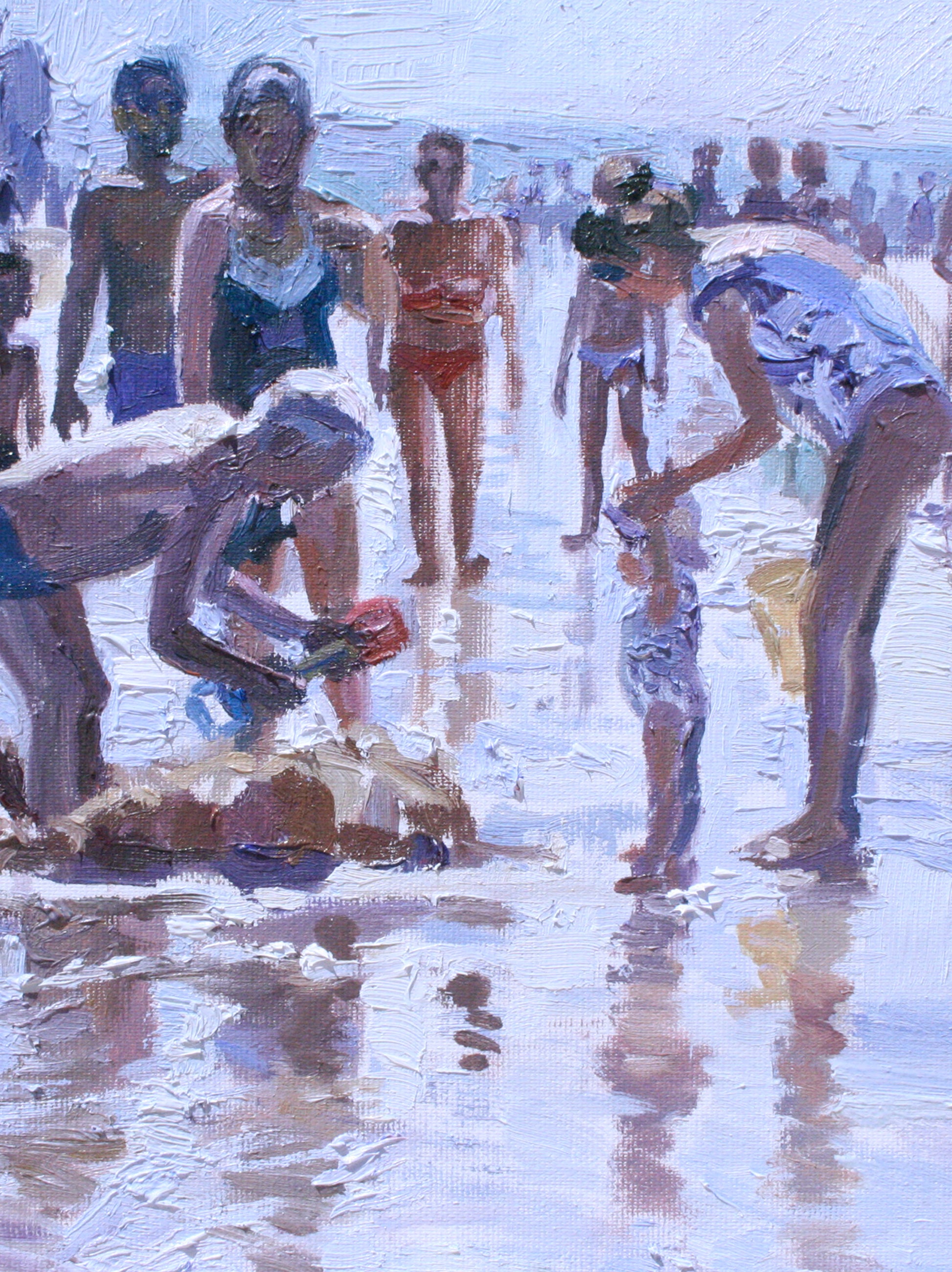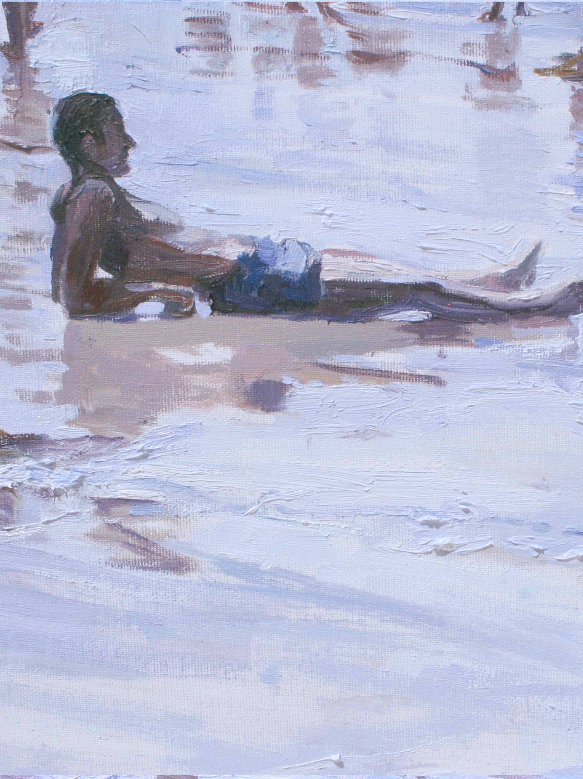 Ellos estaban allí, ajenos al bullicio, sus siluetas destacaban sobre la arena mojada, tumbados, con las manos metidas en la arena, en contacto con la naturaleza, no hay nada que trasmita más calma.